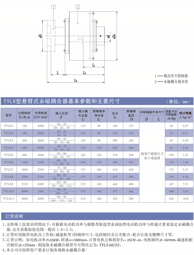十、TYLX型永磁耦合聯(lián)軸器結構圖及主要參數