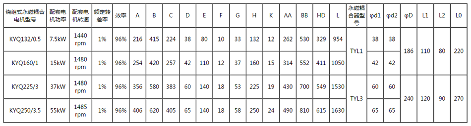 四、(輔)繞組永磁耦合調速電機主要技術(shù)參數