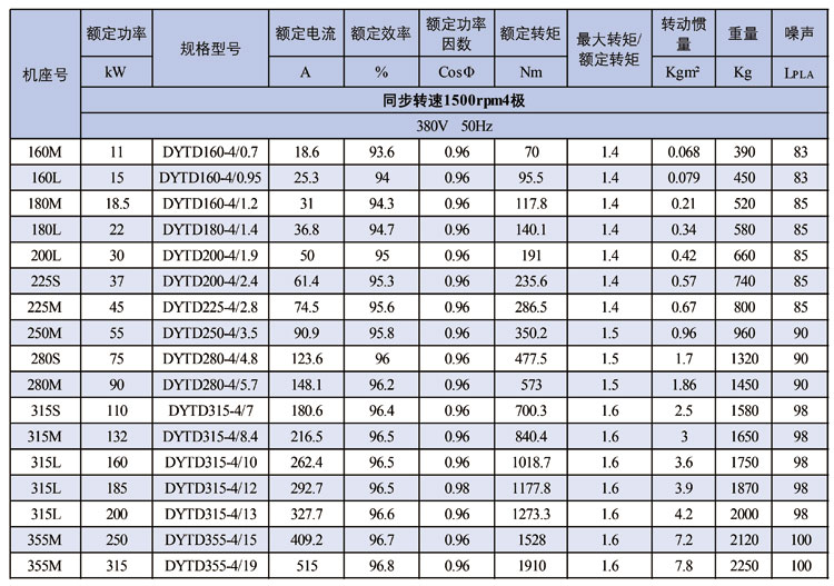 下表為與平方轉矩系統45kW-4(Y2系列異步電機使用變頻供電)同工況效率對比