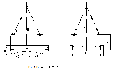 四、RCYB系列懸掛式手動永磁除鐵器主要技術(shù)參數(shù)、外形尺寸 執(zhí)行標(biāo)準(zhǔn):JB/T8711