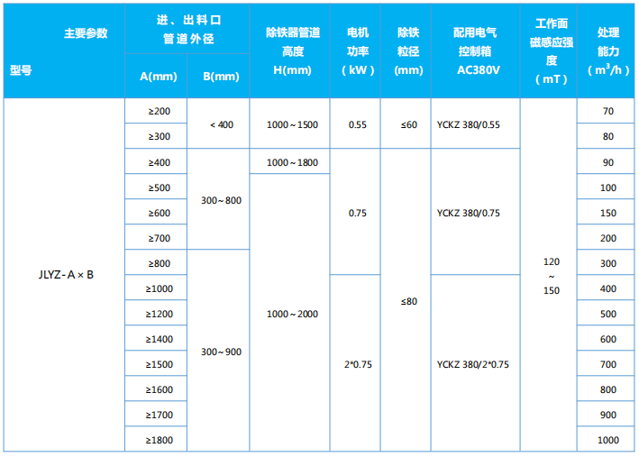 注:可根據(jù)用戶(hù)需要,定制各種特殊型號(hào)、規(guī)格的除鐵器