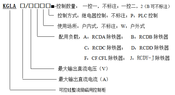 KGLA系列電磁除鐵器可控硅整流柜設備,是電磁除鐵器工作的電源及控制設備,它與電磁除鐵器配套使用,是電磁除鐵器的專用配套設備,也可以作為其他類似直流負載用電設備的電源。
