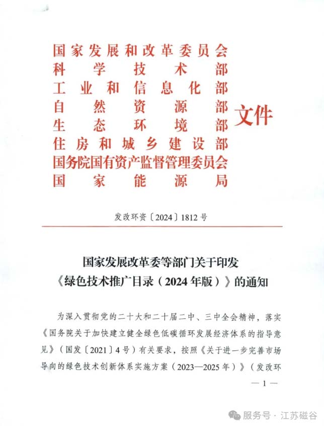 【喜報(bào)】我司繞組式永磁耦合調(diào)速技術(shù)入選國(guó)家發(fā)改委、科技部、工信部等八部委《綠色技術(shù)推廣目錄(2024年版)》